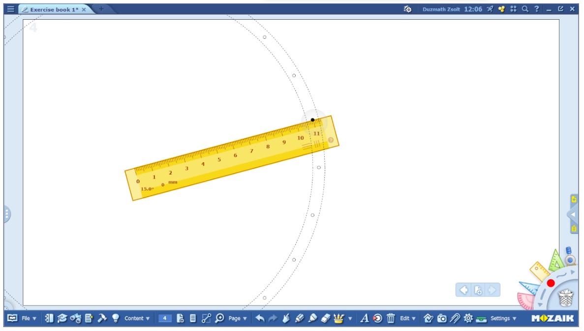 ► Mathematics teachers will love our new feature updates on our geometry tools. By clicking on the rotation option on the tool (ruler or protractor) a 15 degree rotation marker will appear. By dragging the tool between the dotted lines, it will automatically snap to the next dot in 15 degrees increments. Dragging outside of the dotted line area will ignore the snapping points and will rotate smoothly without snapping.