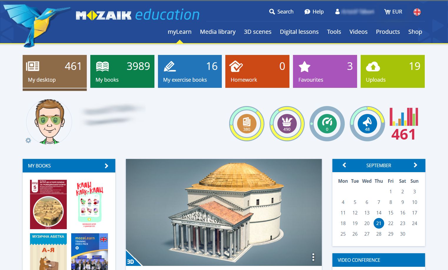 Managing books and exercise books on mozaWeb