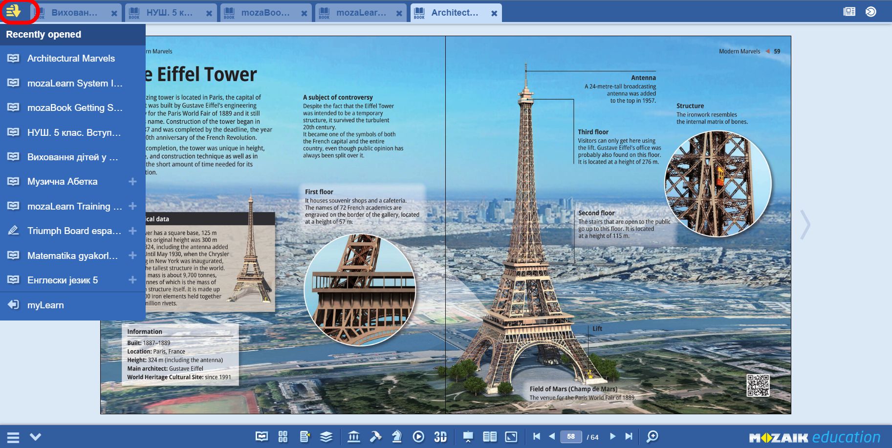 If teachers choose to use mozaWeb for opening and presenting textbooks and exercise books - created in mozaBook - during their lectures, now it’s made even more seamless. As a new approach, we introduced tabs for easier browsing between multiple materials that help open and explore in several publications at the same time (books and exercise books, as well) on mozaWeb. A maximum of 10 tabs can be opened at the same time - the number of maximum open tabs might be limited depending on the actual screen size for a better user experience.