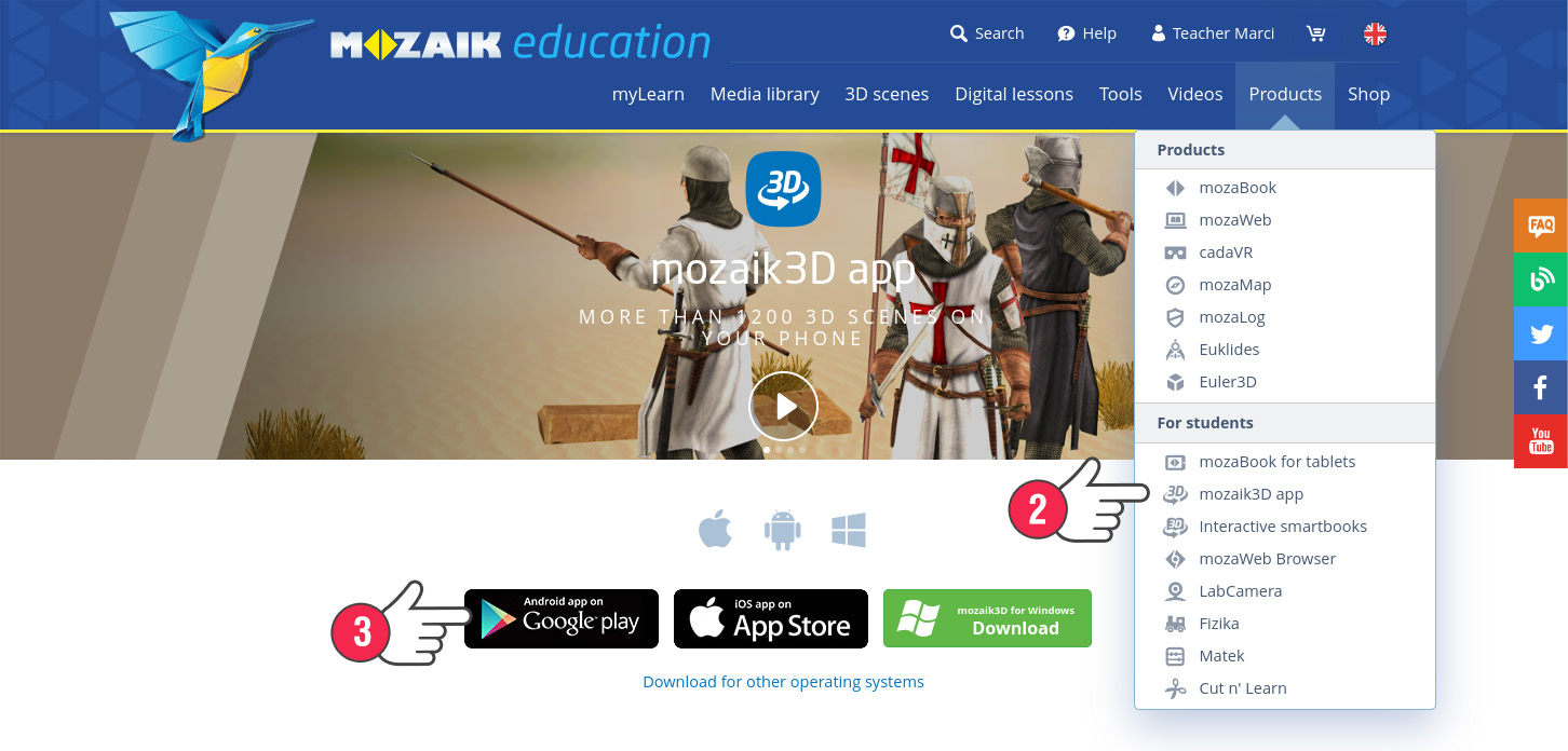 mozaik3D апп нь Бүтээгдэхүүнүүд цэсэнд (2) ч бас байгаа. Суулгалтыг эндээс ч эхлүүлж болно, үүний тулд Google play товчийг дараарай (3).