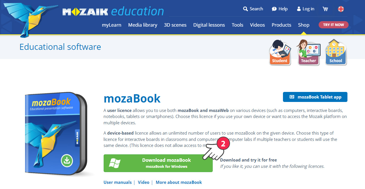 - Надад Mozaik TEACHER / Mozaik STUDENT лиценз байгаа боловч mozaBook-ийг ашиглаж болохгүй байна.