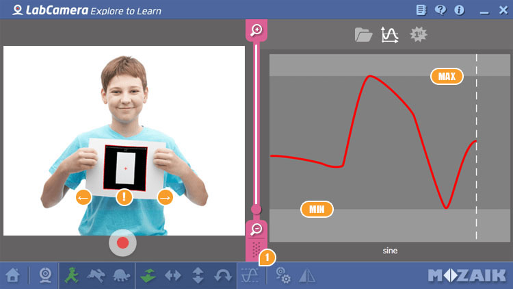 After selecting an object for tracking, you will need to calibrate your movement area to make sure that the object's movement can reach highest and lowest values of your curve. Once calibrated, you can use Graph Challenge as many times as you want provided that the placement of your camera and the tracked object is the same as during calibration.