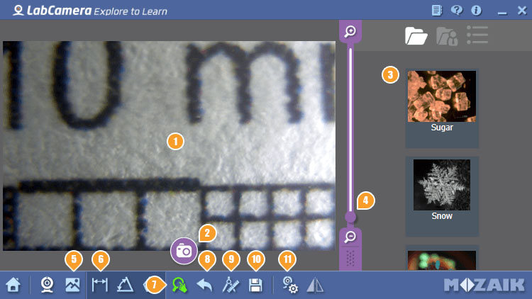 The Microscope feature allows you to carry out microscopic measurements and also to perform any kind of measurement when a reference value is available (ie. the moon’s diameter). Web cameras are able to capture extremely close shots, so even single-celled organisms can be observed as well.