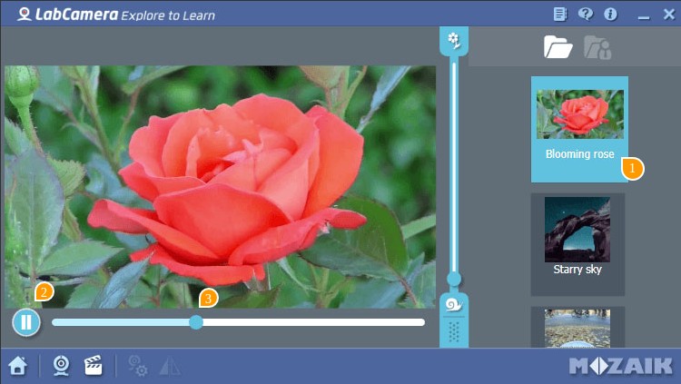 The Time Lapse function helps you observe and better understand the slow processes in nature, such as the formation and migration of clouds, ice melting, the growth of plants, etc. The software makes still shots in configurable intervals and stitches these images into a coherent stream of video.