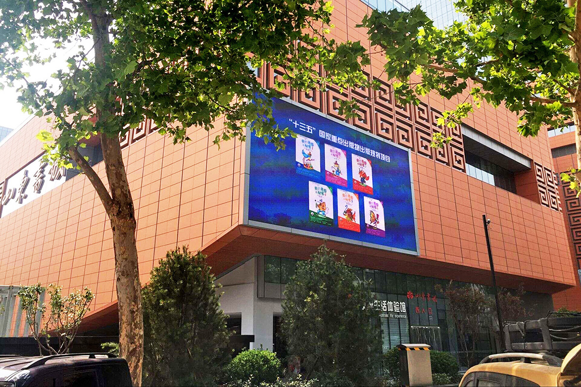 Outdoor big screen displaying mozaBook at Shandong Book City, China.