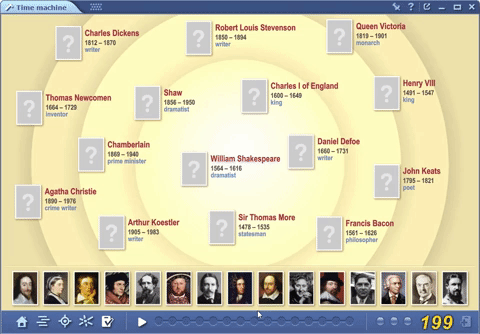 Once you have the whole crew on your plate (for example, William Shakespeare with his contemporaries and fellow writers), you can generate an exercise with one click . The goal is to match the names with the images on the tray which is an exceptionally good way to refresh the memories about important historical dates and figures.