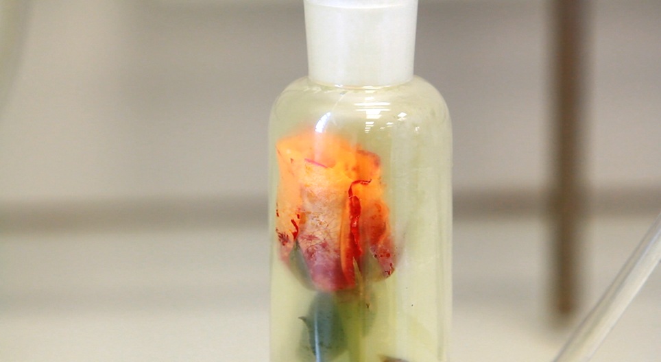 Энэ туршилтаар бид сарнайг хлорын хийгээр өнгөгүй болгоно.