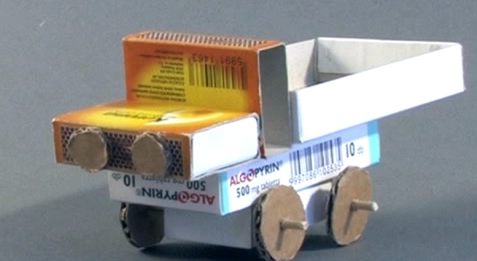 Watch how to a make a toy truck using matchboxes.