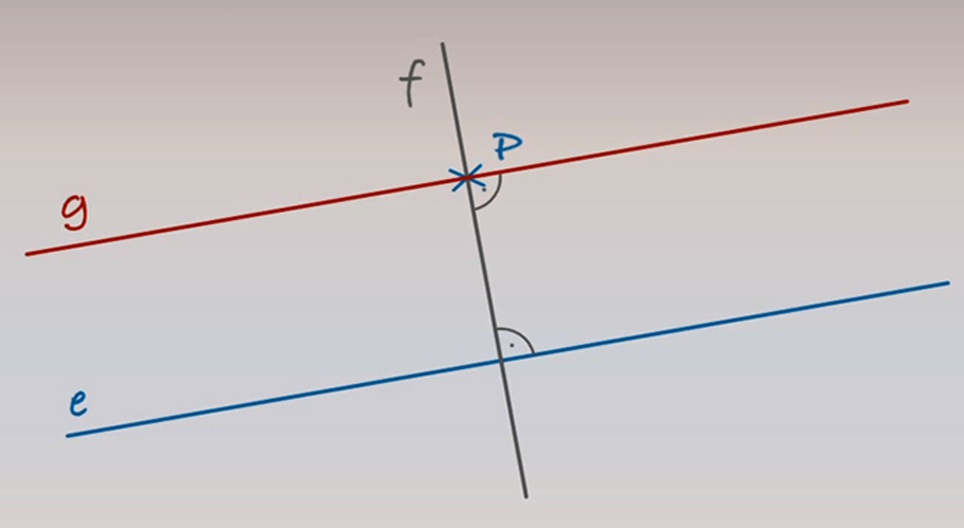 e шулуунтай параллель бөгөөд P цэгээр дайран өнгөрөх g шулууныг зурцгаая.