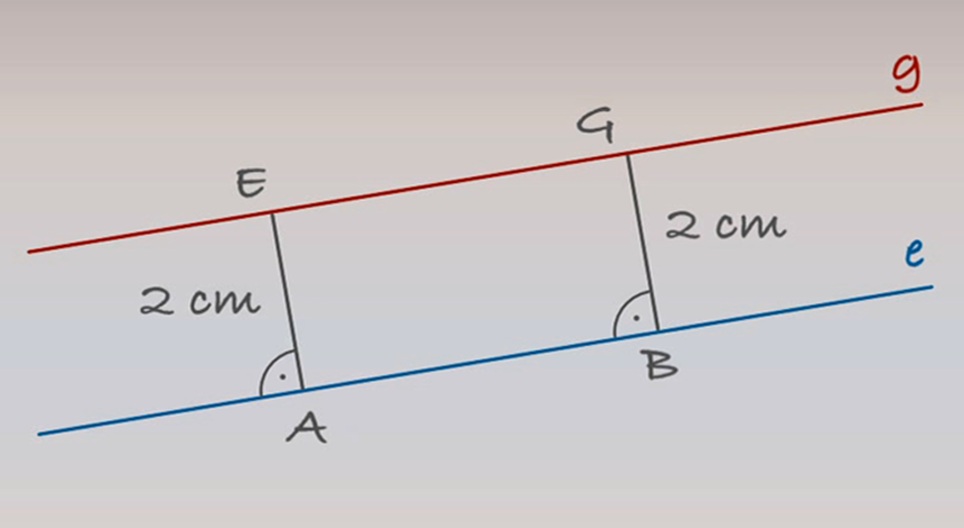 Line e is given. Let’s plot a line parallel to line e 2 cm away.