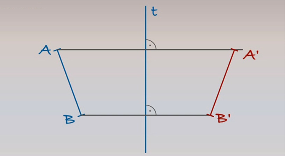Axis t and line segment AB are given on a plane. Let’s plot the mirror image of line segment AB across t.