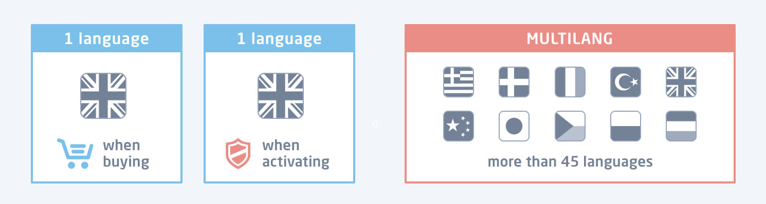 Манай бүтээгдэхүүнүүдийг худалдан авахдаа нэг хэлтэй эсвэл MULTILANG (хэд хэдэн хэлтэй) хувилбарыг бас сонгох боломжтой.