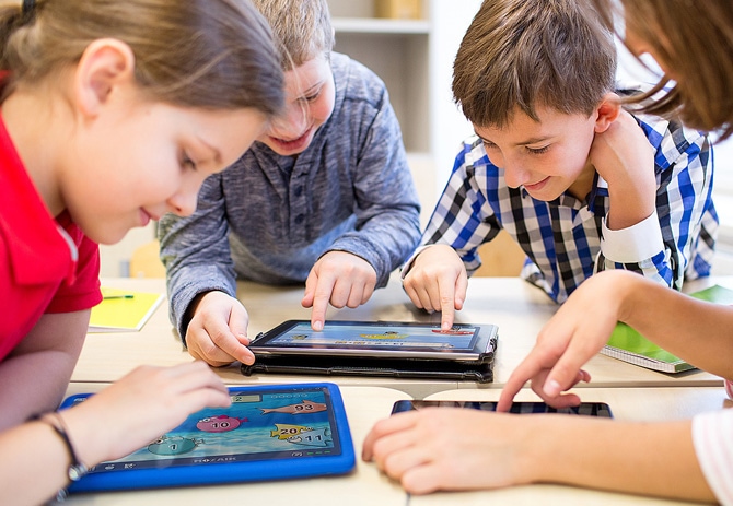 mozaBook tablet - Сурагчид цахим сурах бичгээ хаана ч авч явах боломжтойгоос гадна офлайн ч ашиглаж болно. Мөн тэд ангийн ажилд оролцохын тулд интерактив самбар дээр ажилладаг mozaBook-тэй ч бас холбогдож болно.