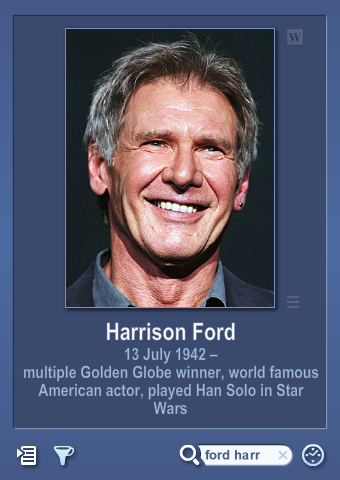 Click on the clock icon in the right bottom corner of the list view window to filter by time period. The slider under the timer enables you to produce a historical who’s who for a time period as short as 60 years, which can be used e.g. for exploring the contemporary peers of the historical figure/artist the students are just learning about.
