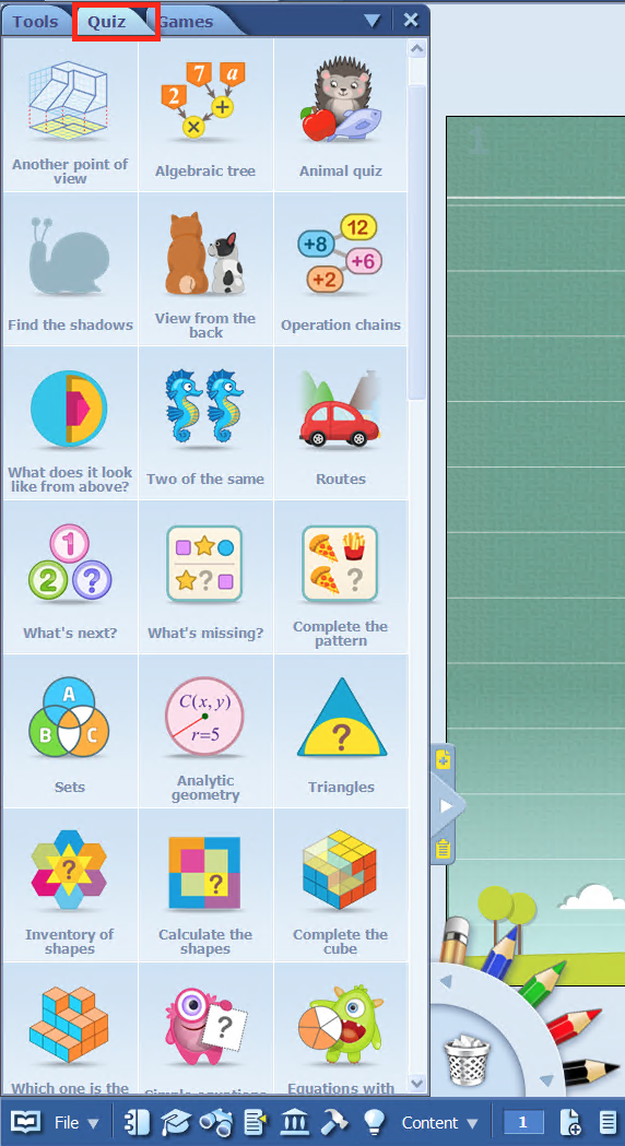 Besides the pedagogical added value of this new content type it’s also important to mention that due to being a fully graphical, text-exclusive content type, it is language-independent. Many of them can be used even at the KG level.