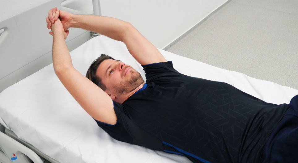 Shoulder rehabilitation that involves the gradual recovery of passive range of motion through self-stretching exercises.